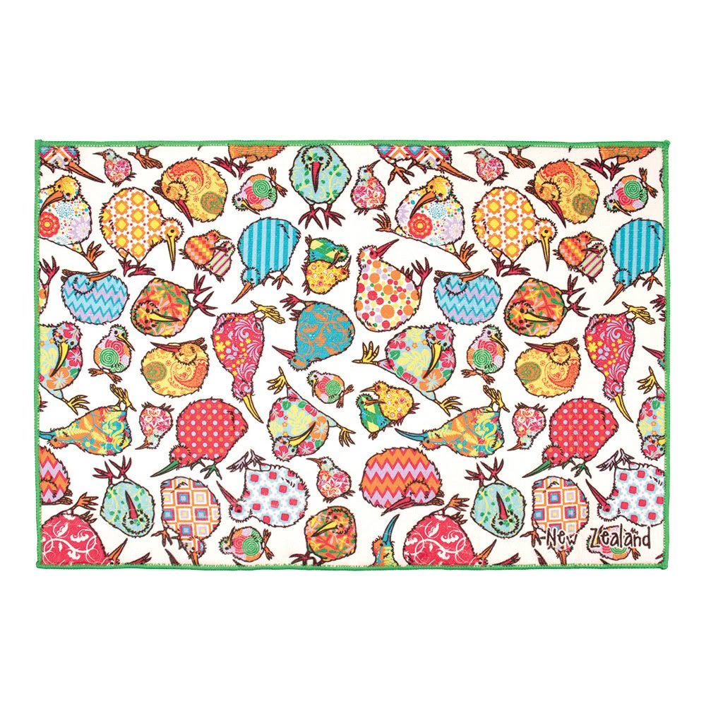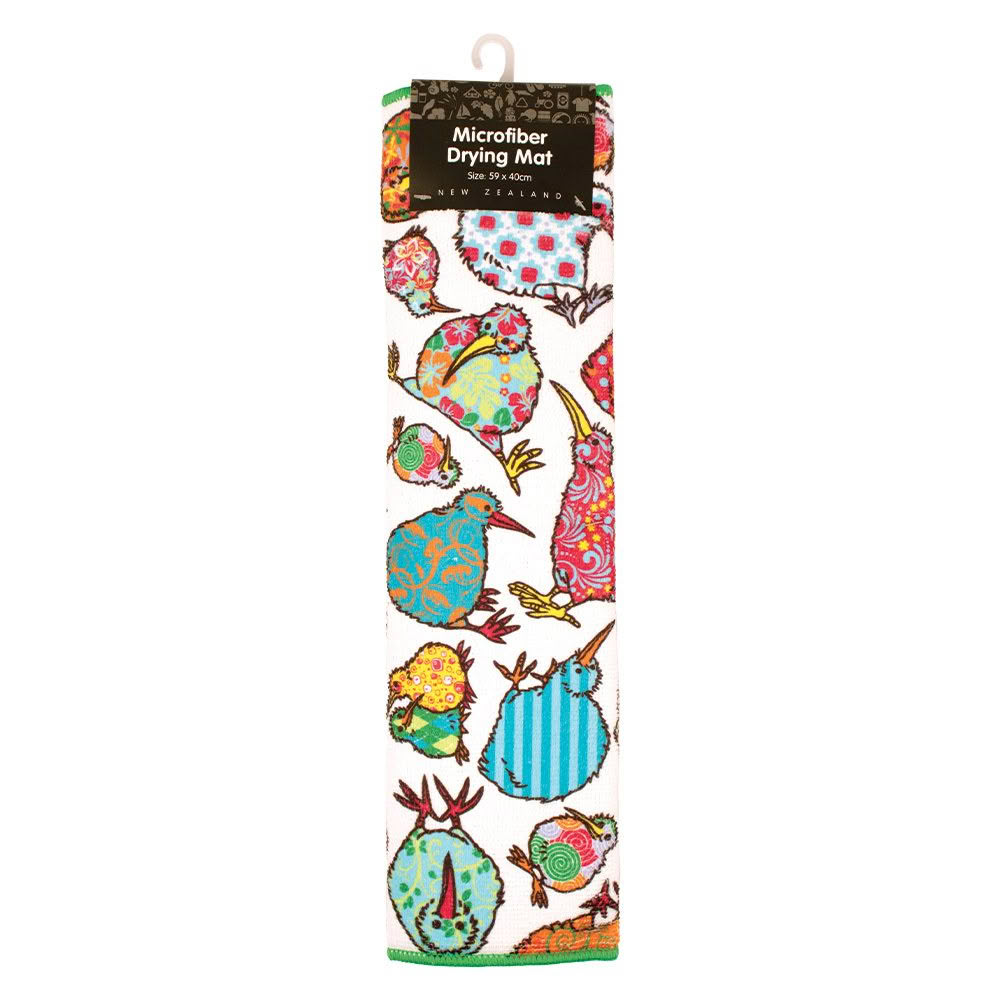 Kaleidoscope Kiwi design drying mat, 59 x 40cm. Super absorbent. Provide extra drying space. Soft & stable, ideal for glasses. Soft non scratch surface.