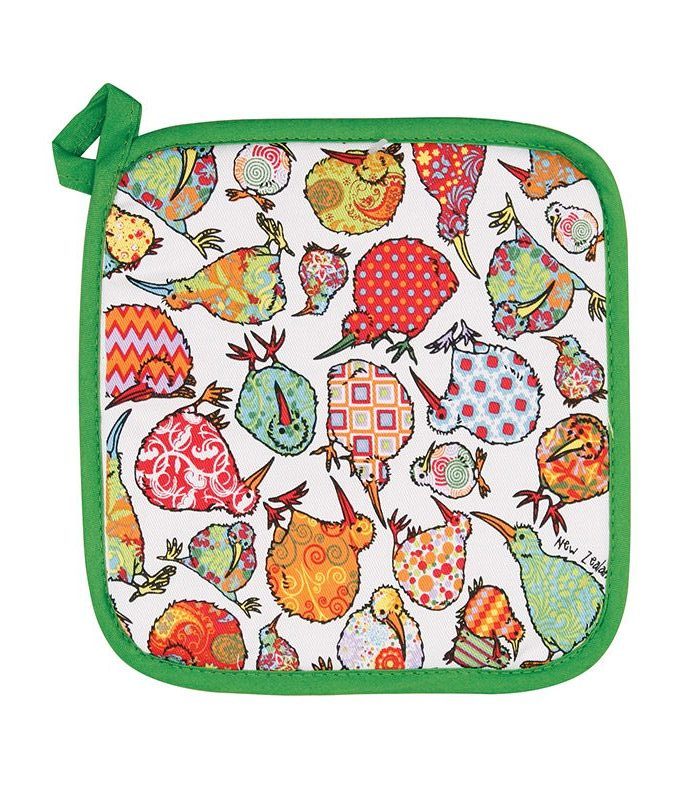 Ideal for hot pot lids, microwave dishes or resting hot pots on the bench. Complete with handy loop for hanging. 100% Cotton outer with polyester fill. 18 x 18cm. Check out the Kaleidoscope Kiwi Range for other items available to purchase.