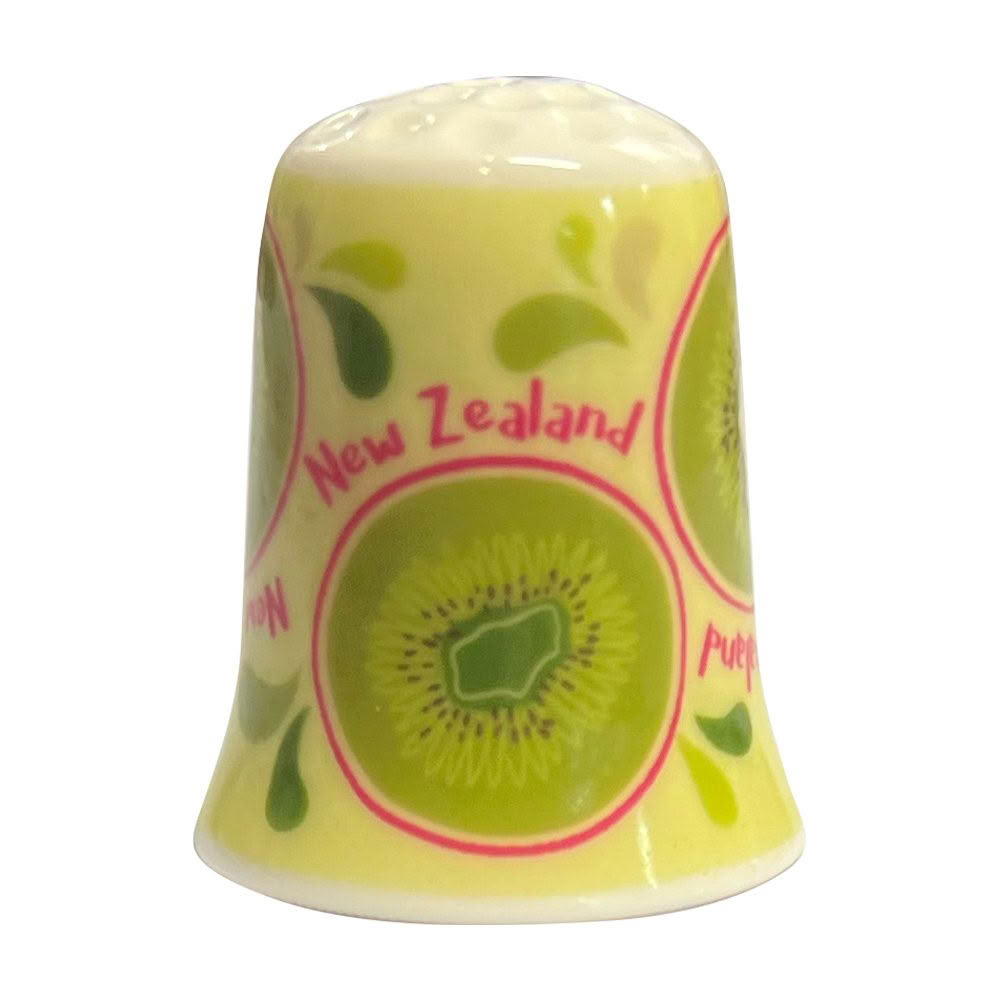 Charming ceramic thimble with Kiwifruit design, perfect for craft lovers and collectors.