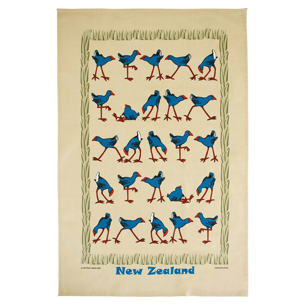 Brighten up your kitchen textile collection with our Pukeko Playing themed Tea Towels. 100% Cotton. 76 x 49cm.