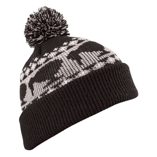 Unisex Kiwi Jacquard Beanie with Pom Pom. Double Thickness and Turn Up Cuff. 100% Acrylic. Matches gloves style GL002.